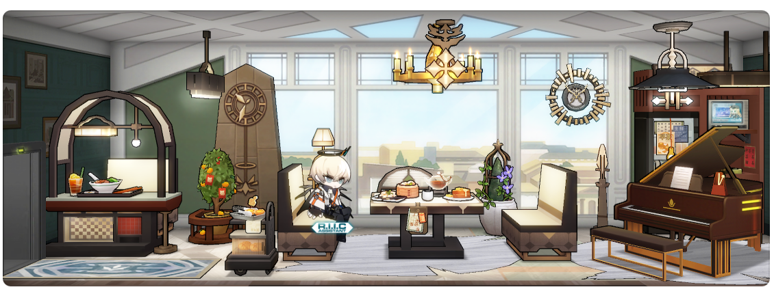 お返し(?)にイグゼキュター専用部屋を一部最新家具にしました。アークナイツの家具ってメチャクチャにおいても結構調和するからすごいよね。