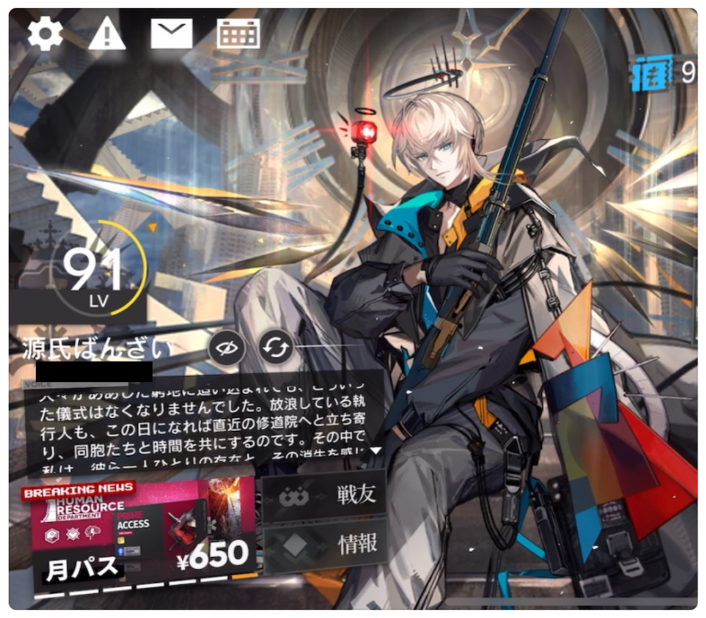そしてなぜか聖約イグゼキュターとラテラーノくんの人事画面でのSSを撮影できていなかったので、ホーム画面で失礼します。なんなら人事で聞けるって後で知ったよ。いちいち戦友リストから基地訪問して切り替えてたよ。