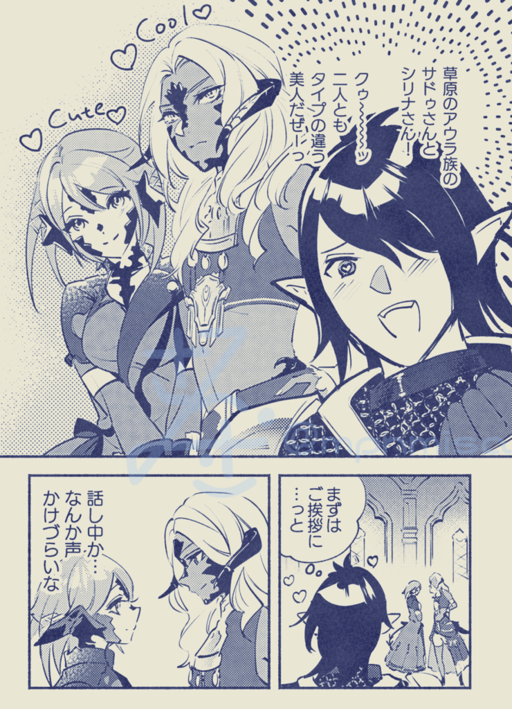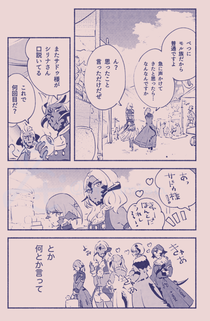 こちらはスクウェア・エニックスの冒険者30000000人を突破した大人気MMORPGファイナルファンタジー14のメインストーリーに登場する「サドゥ」「シリナ」というキャラクターの百合カップリングです(一息