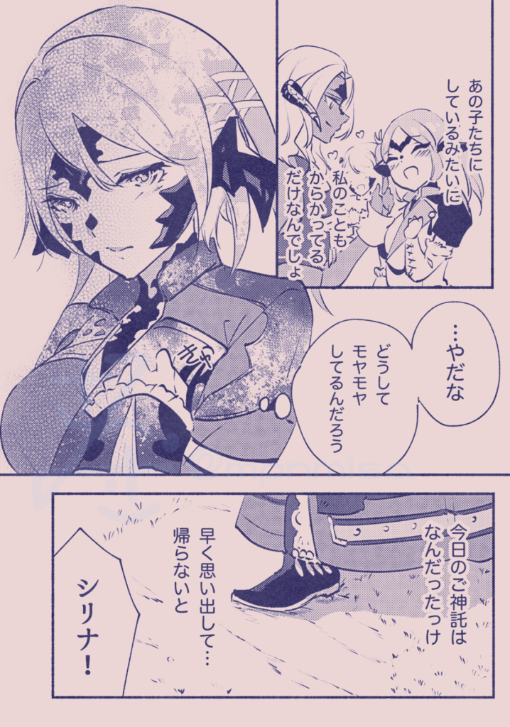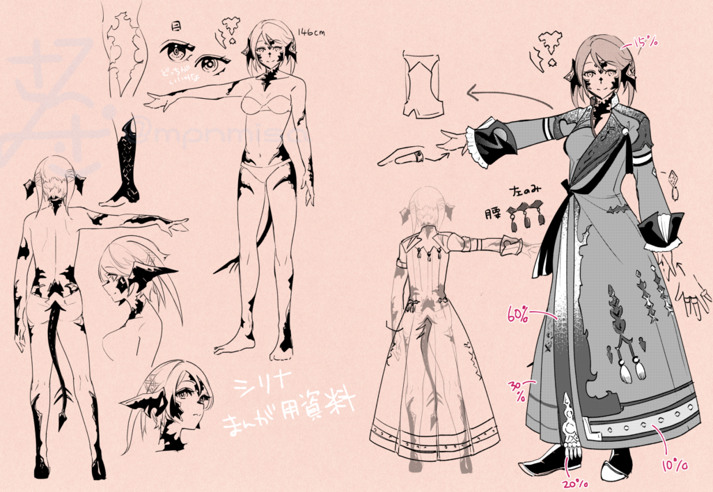シリナはキャラ的に普段はあまり好きにならないタイプなんですが描けば描くほど好きになっていく・・・はわわキャラかと思ったら結構しっかり者だし食いしん坊だし、そして公式でなんの根拠もないのに「胸囲めすら最大値」ってことになってるの好きすぎ。ゲーム本編のほうでは笑った顔より悲しんでる顔の方が可愛いと思います。自分で描くときは「私が考えた最強に可憐で可愛い女の子」を意識しながら描いています。