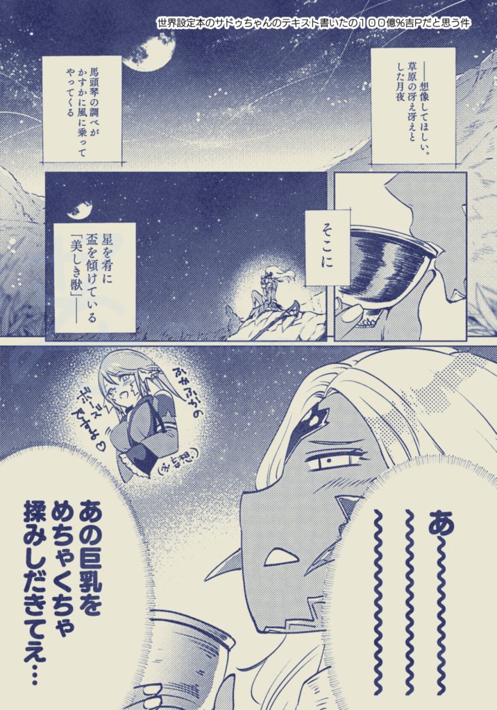 元々男前キャラが好きなのでサドゥちゃんに関しては出会った頃から好きでしたが、族長ということ以外色々謎すぎる、まず性自認が男なのか女なのか教えてほしい。世界設定本も謎ポエムよりもちゃんとサドゥちゃんが木の股から生まれてない証拠を記してほしいものです。
