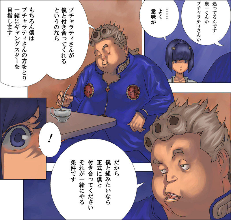 神コラですね。ブチャラティが片袖抜いた時にジョルノが差し迫った表情を見せてましたがそれをこんな風に解釈するのが、我々腐女子以外にも存在するとは!ガチで好きとか言っちゃってるし… 個人的に「これからなればいい・・・」が好きすぎ。それにしてもこのジョルノ、「夏に汗疹ができてたりすることあるだろ…あれに、興奮する…」とか言いそうである。