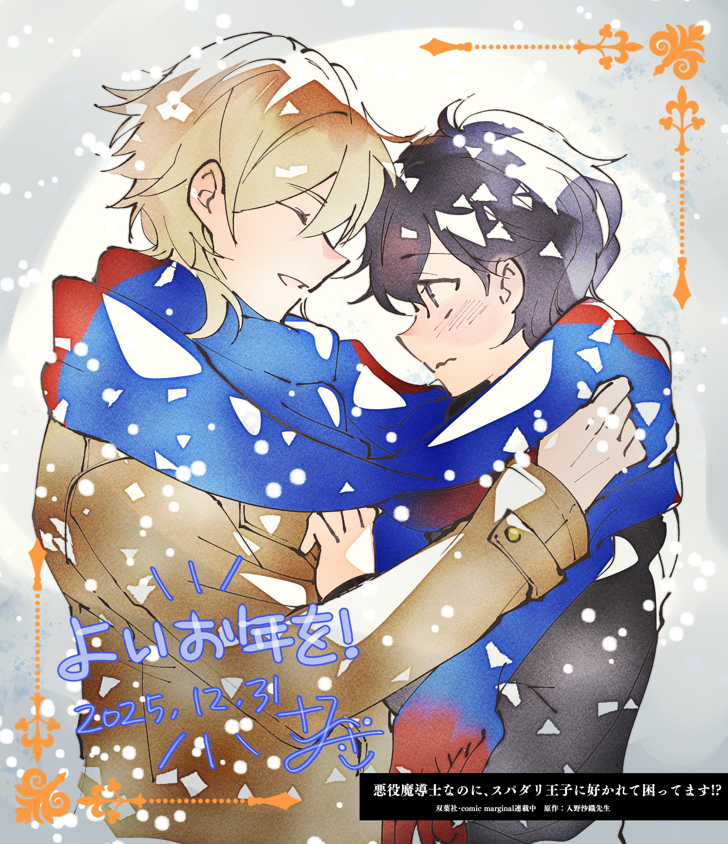 無事完結を迎えた『悪役魔道士〜』の二人で締め!二人がラブラブになるのが最終話付近なので今まで仲良しイラスト描きづらかったんですが、解禁になりました。